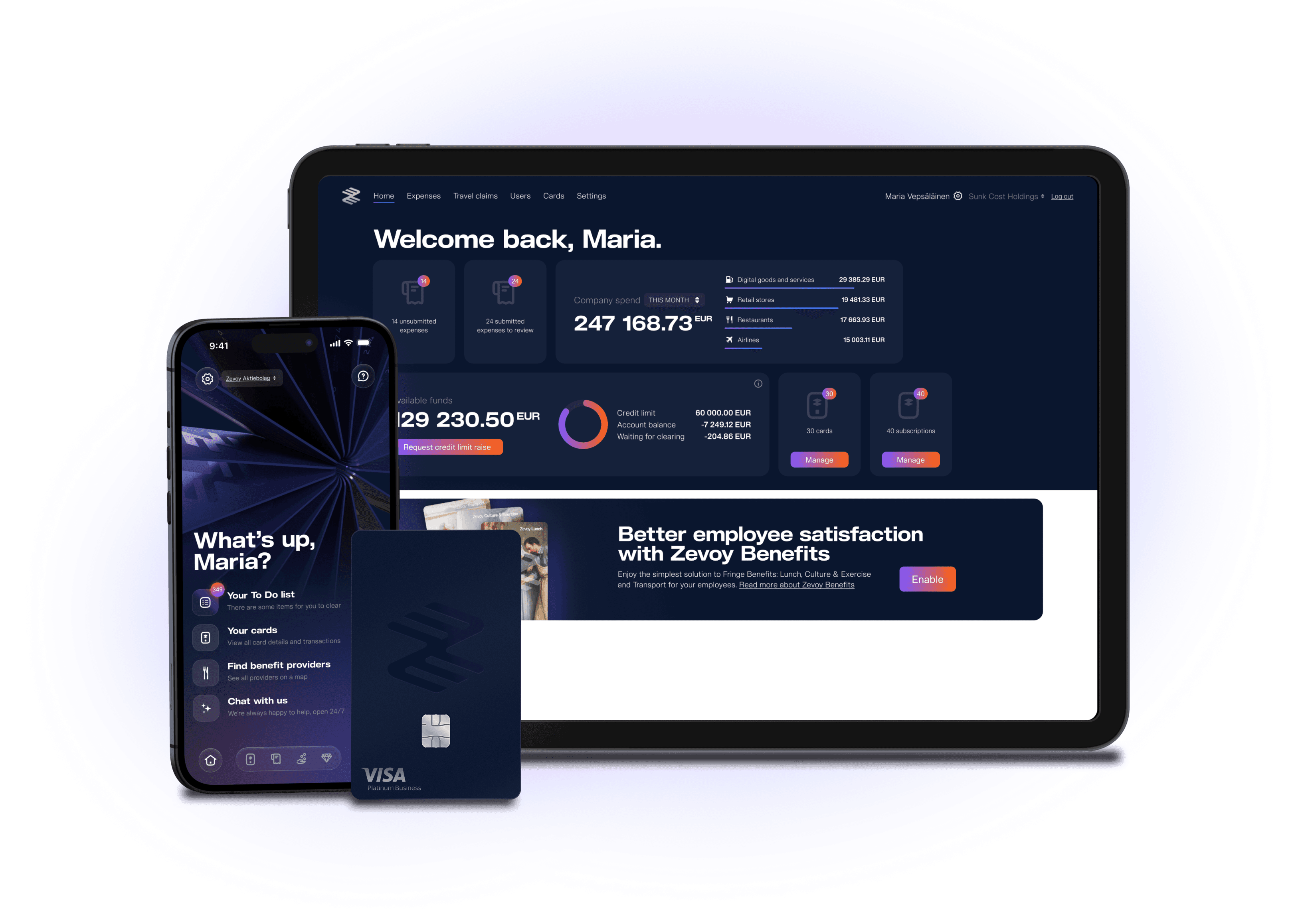 Varaa demo lähettämällä yritystietosi. Myyntitiimimme ottaa sinuun yhteyttä seuraavien kahden työpäivän aikana järjestääkseen demon, joka perustuu tarpeisiinne ja siihen, miten Zevoy voi auttaa teitä säästämään lukuisia tunteja kuukaudessa kulujen hallinnassa.