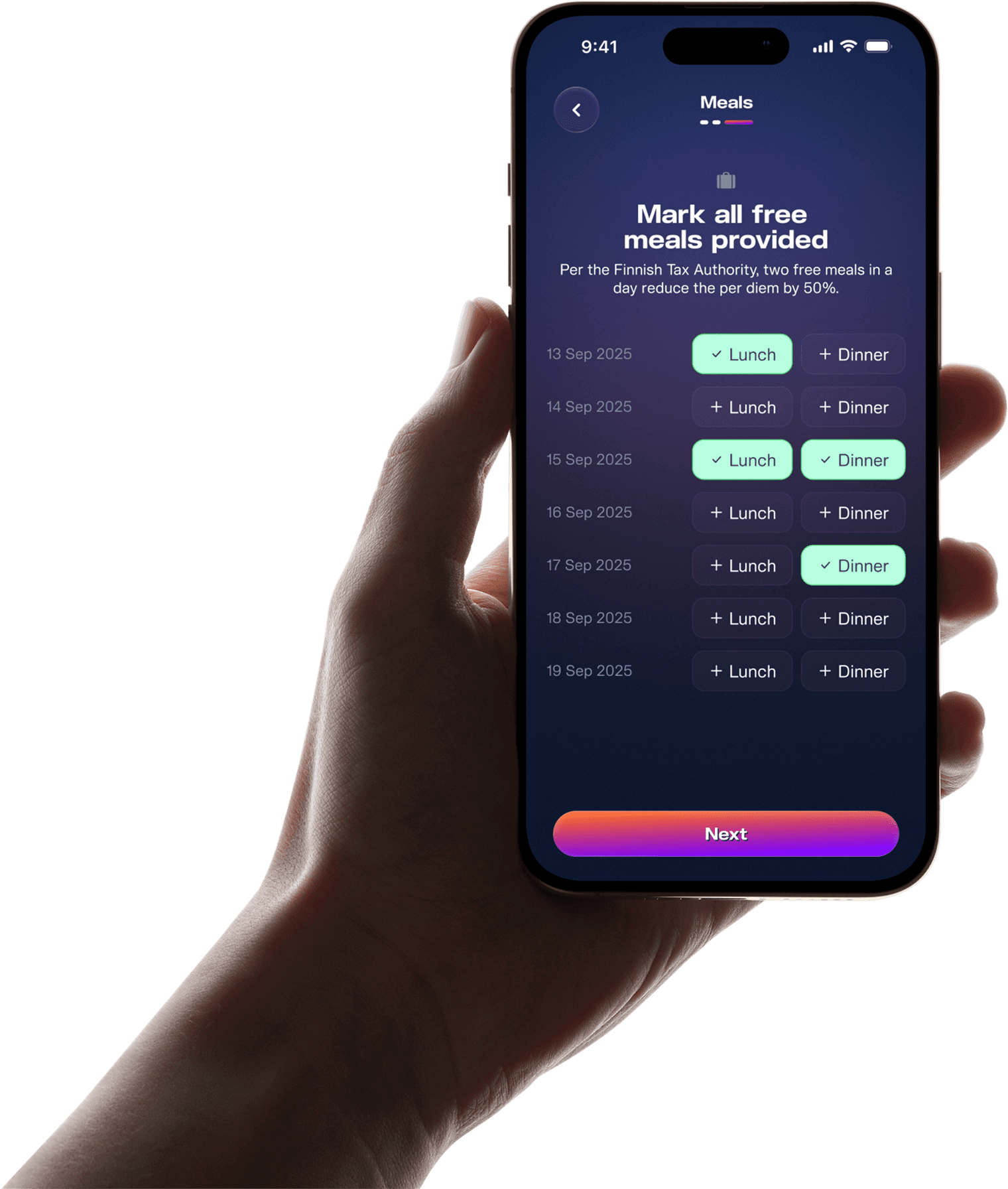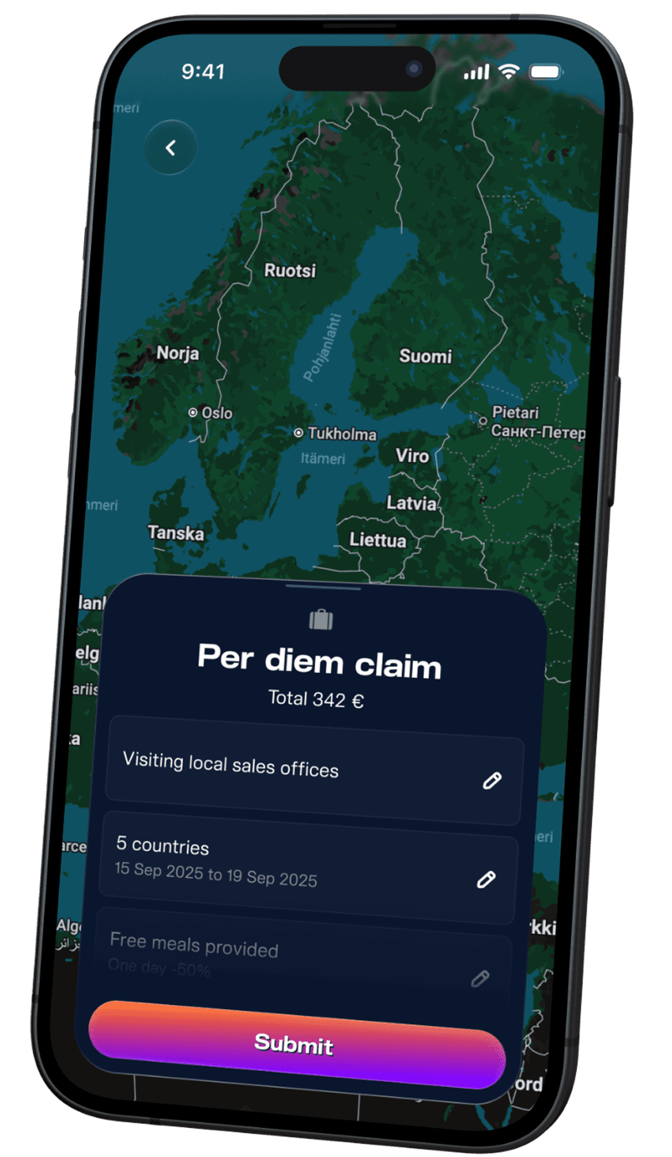 Automaattiset laskennat päivärahoille ja kilometrikorvauksille.